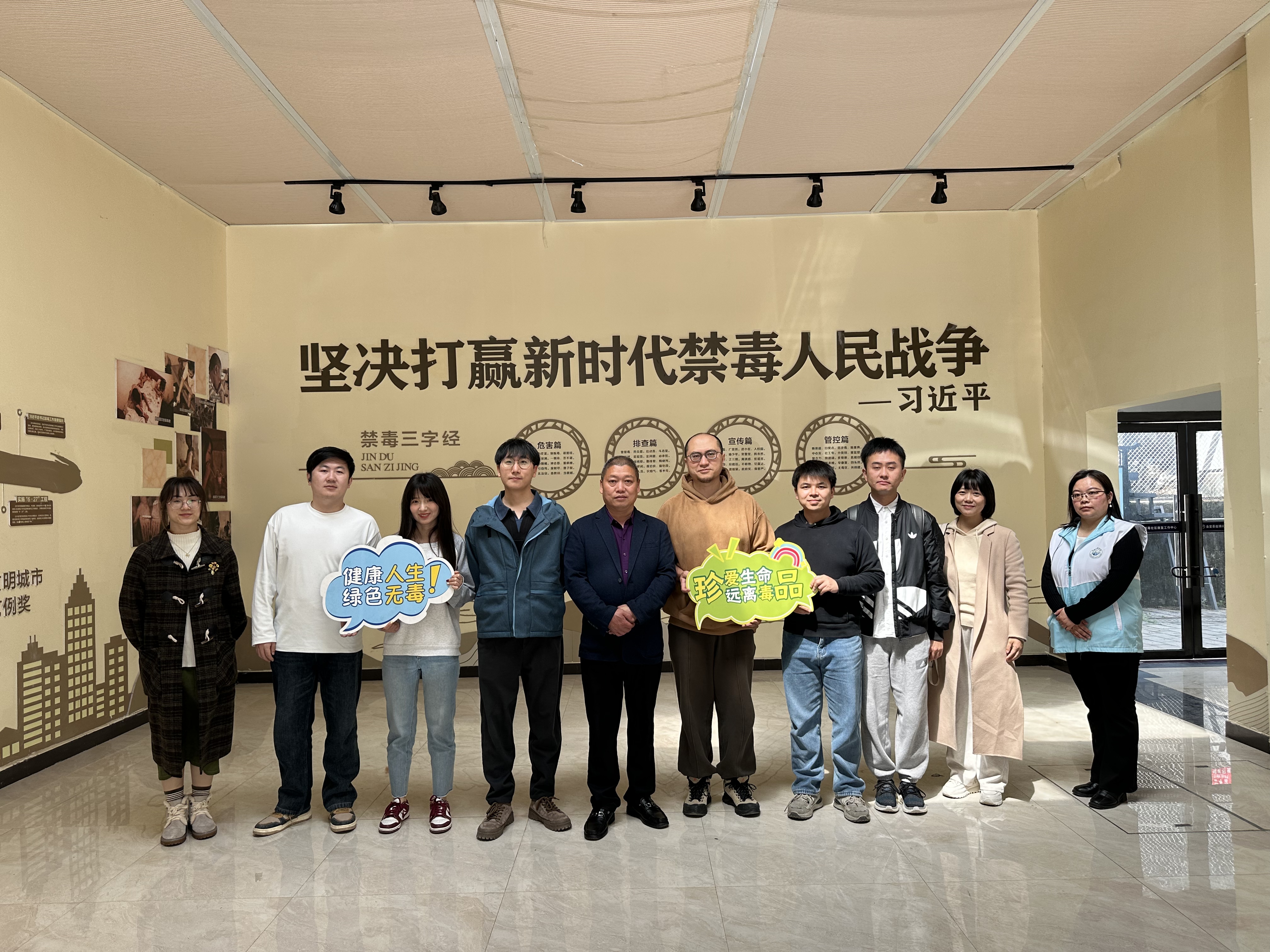 活动最后,教师团队实地参观了十里社区精心打造的“禁毒宣传长廊”。该长廊以互动展板、实物模型和典型案例为载体,系统展示毒品危害、法律知识及社区戒毒帮扶成效。赵力燕副教授表示,未来可借鉴社区戒毒心理帮扶模式,延伸至老年人心理健康服务领域,例如设计“老年情绪管理”“家庭照护者心理支持”等实践课程,提升员工社会服务能力。