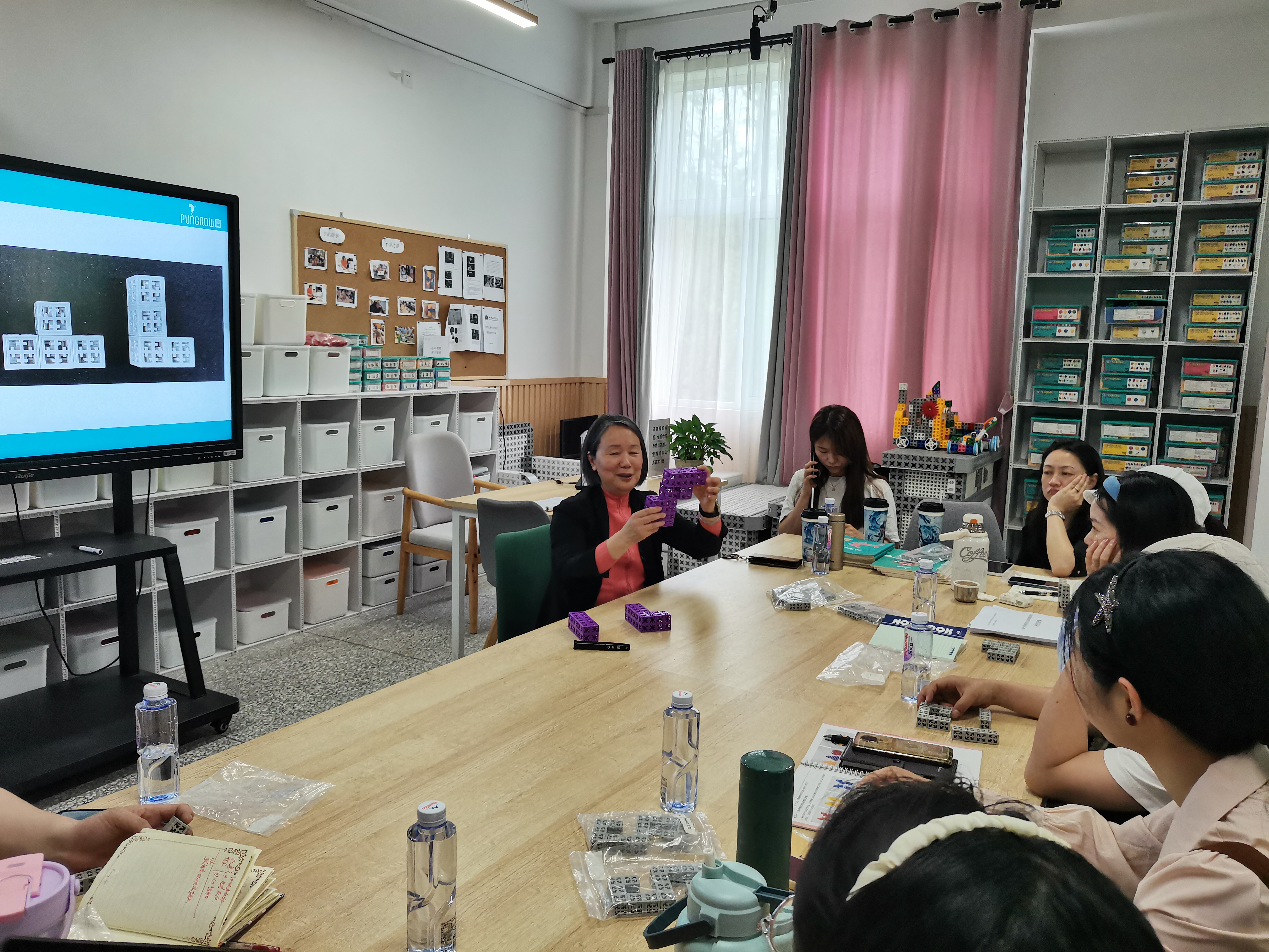 最后,谢秀丽教授着重展示了品果思维研究院自主研发的特色玩教具。该玩教具专为3 - 8岁儿童设计,采用环保材质,由可拆卸的镂空图案方块拼接而成,拥有丰富多样的拼搭组合方式。此玩教具锻炼了孩子的动手操作能力,思维能力及反应力等。并且此玩教具通过模块化设计将数学逻辑与空间思维融入趣味游戏中,助力开发儿童了的多元智能。