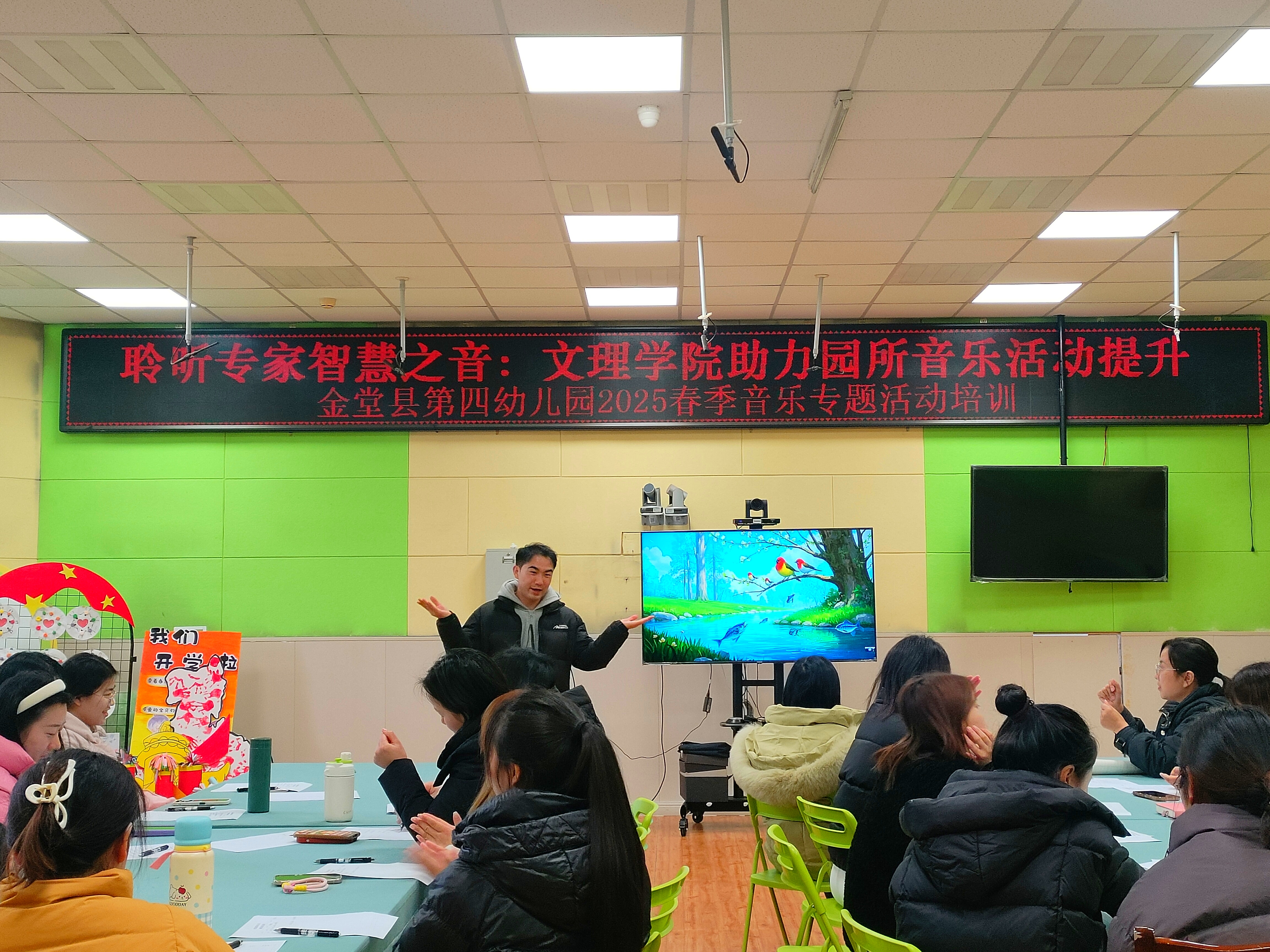 2025年3月5日,williamhill儿童音乐团队孵化基地受邀至金堂第四幼儿园,开展了一场主题为“学前儿童歌唱活动设计与实施”的春季音乐专题活动。williamhill音乐教育教研室卢国强老师作为此次主讲人,为金堂第四幼儿园的全体教师带来了一场干货满满的讲座与示范课。